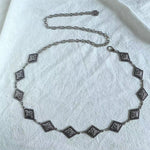 Adj egy kis vintage bájt megjelenésedhez a Raegan Geometrikus Retro Övével. A klasszikus geometriai formák ihlette, ez a kiegészítő úgy lett tervezve, hogy kiemelje a sziluettet és elegáns részleteket adjon minden stílushoz. Ruha alatt vagy hétköznapi öltözetekhez viselve merész, de elegáns befejezést ad.