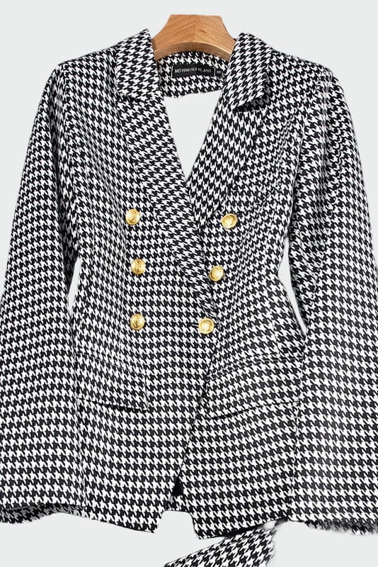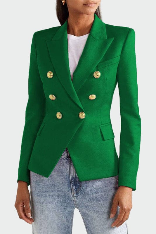 Elegáns dzseki, amelynek szabása kiemeli a sziluettet és hangsúlyozza a stílust. Finom hajtókás gallérral, dupla elülső záródással és két oldalsó zsebbel rendelkezik. Időtlen dizájnja miatt ideális mind a professzionális öltözködéshez, mind az esti kimenetekhez, magabiztosságot és kifinomultságot kínálva minden alkalomra.