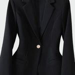 Időtlen dzseki elegáns szabással, amely hangsúlyozza a nőiességet és a stílust. Az elülső egy gomb kifinomultságot ad, míg az egyszerű vonalú zsebek erősítik a ruházat minimalista jellegét. Ideális mind professzionális megjelenésekhez, mind elegáns esti programokhoz.