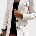 Ez a kabát kifinomult dizájnnal rendelkezik, amely határozott és modern stílust kölcsönöz. Klasszikus hajtókái, elöl gombjai és praktikus fedett zsebei vannak. Ideális mind a professzionális, mind a lazább stílusokhoz, eleganciát és kifinomultságot adva minden alkalomra.