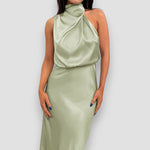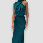 • Elegáns halter nyak – Kiemeli a vállakat és karcsú, nőies alakot formál.