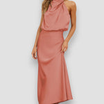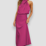 Hagyd, hogy a Carlina selyem ruha, halter nyakkal felejthetetlen benyomást keltsen. A magas minőségű selyem anyag finoman tükrözi a fényt, míg a kifinomult halter nyak eleganciával emeli ki az alakot. A laza fazon kifinomult megjelenést és maximális kényelmet biztosít.